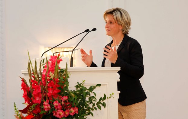 Landes-Wirtschaftsministerin Nicole Hoffmeister-Kraut (CDU) begrüßte im Neuen Schloss rund 400 Gäste zur Verleihung des Lea-Mittelstandspreises.