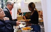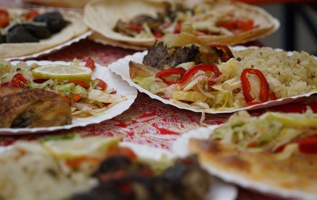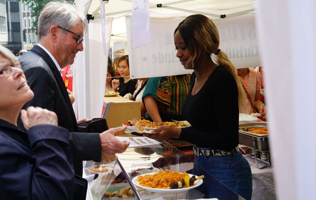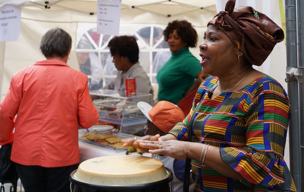 Nach dem Gottesdienst mit Landesbischof Dr. h. c. Frank Otfried July konnten die Gäste vor den Türen der Stiftskirche auf eine kulinarische Weltreise gehen. An zahlreichen Ständen boten die Gemeinden verschiedene internationale Spezialitäten an. Mit Trommeln, Gesängen und Tänzen in traditionellen Trachten sorgten sie am Nachmittag zudem für ein abwechslungsreiches Bühnenprogramm.
