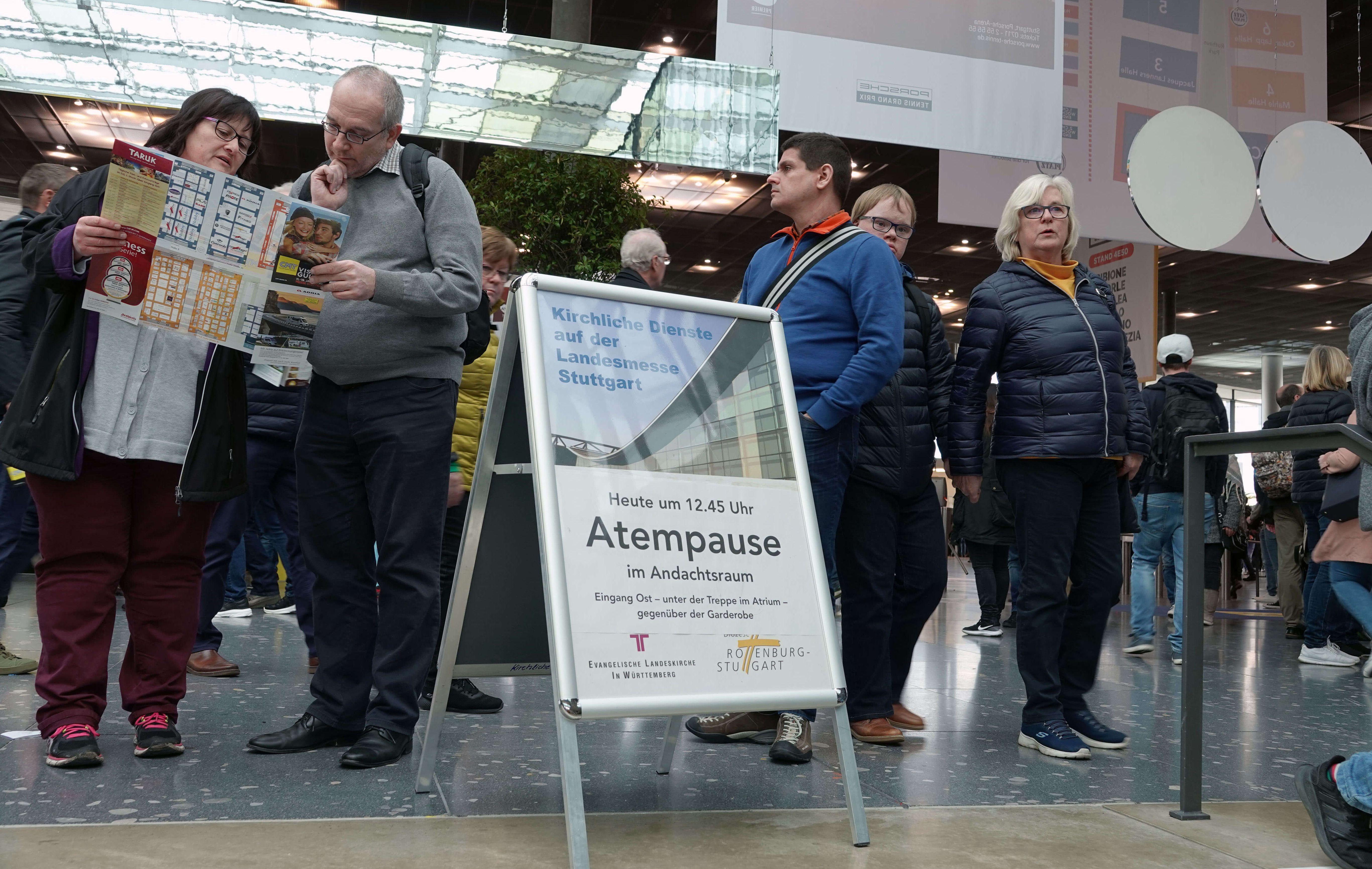 Die Urlaubsmesse CMT (Caravan, Motor und Touristik) ist noch bis einschließlich Sonntag, 19. Januar, täglich von 10 bis 18 Uhr geöffnet. Zu einem gemeinsamen Empfang laden die vier großen baden-württembergischen Kirchen am Donnerstag, 16. Januar ab 10 Uhr ins Internationale Congresszentrum ein; dabei spricht der bayerische Motorrad-Seelsorger Frank Witzel. Am Sonntag, 19. Januar, stimmt ab 9.30 Uhr Pfarrer Heiko Bräuning von der württembergischen Landeskirche gemeinsam mit dem Pianisten Michael Schlierf und Bläsern des Evangelischen Jugendwerks in Württemberg auf der Atriumsbühne (Eingang Ost) auf den letzten Messetag ein.