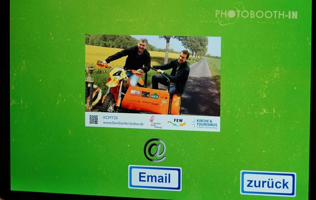 Es ist leuchtend orange und lockt die CMT-Gäste gleich scharenweise an den Gemeinschaftsstand der Evangelischen Landeskirchen von Württemberg und Baden sowie der Erzdiözese Freiburg und der Diözese Rottenburg-Stuttgart: Das Seitenwagen-Gespann der früheren Motocross-Vizeweltmeister Klaus und Thomas Weinmann ist nicht einfach nur ein dicht umlagertes Ausstellungsstück.