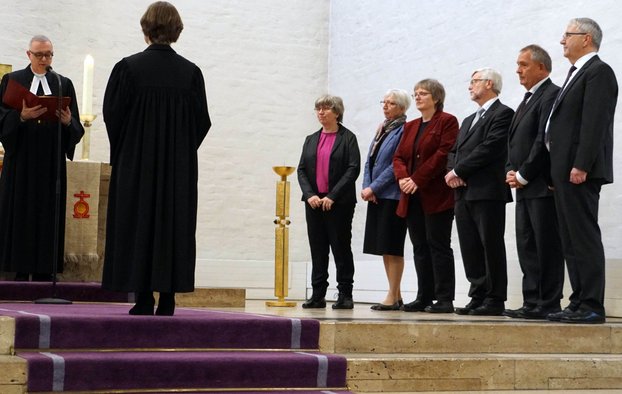 „Wir wissen, dass denen, die Gott lieben, alle Dinge zum Besten dienen", sagte Landesbischof Dr. h.c. Frank Otfried July beim Einsetzungs-Gottesdienst mit Verweis auf den Apostel Paulus. Als Dezernentin habe Kathrin Nothacker die großen Linien im Blick, das Zusammenspiel zwischen all den Haupt- und Ehrenamtlichen, zwischen Pfarrdienst und Kirchenleitung, dem Kirchenbezirk, der Dekaneschaft und darüber hinaus.