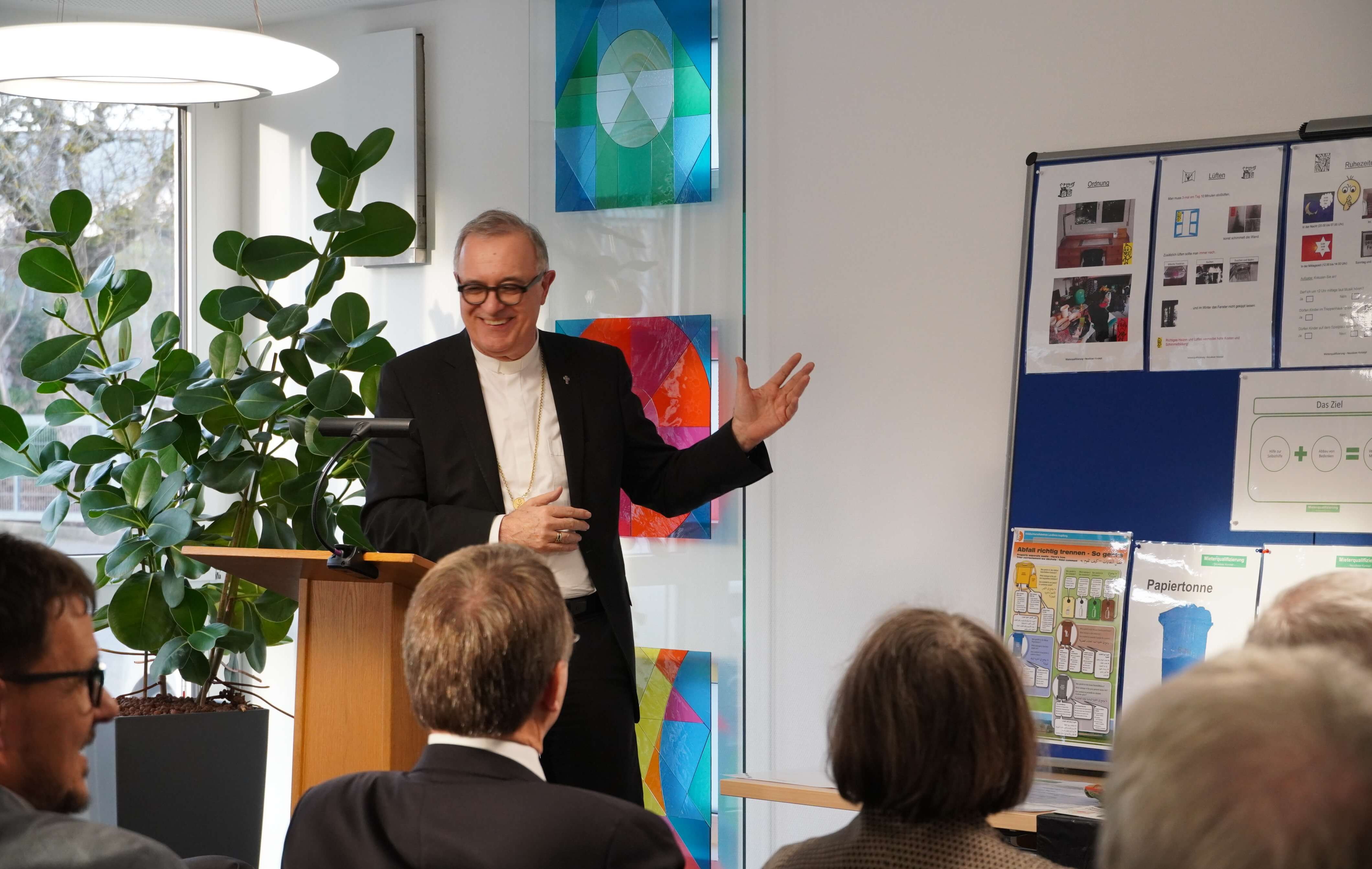 Er und Oberkirchenrat Kaufmann bedankten sich bei den vielen haupt- und ehrenamtlichen Mitarbeitern, die sich weiterhin für eine flüchtlingsbereite Kirche einsetzen. „Integration braucht nicht nur Hoffnung, sondern auch einen langen Atem. Wir wissen: Man kann nicht von jetzt auf nachher Veränderung schaffen. In diesem Fall auch nicht bei den Vermietern, die Vorurteile haben, und Flüchtlingen, die traumatisiert sind und sich hier neu einfinden müssen“, so Kaufmann.