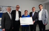 Landesbischof Dr. h. c. Frank Otfried July und Oberkirchenrat Dieter Kaufmann, Vorstandsvorsitzender des Diakonischen Werks Württemberg, überbrachten der Diakonie-Bezirksstelle den Scheck über die beantragte Höchstfördersumme von 2.000 Euro; das Geld stammt aus dem landeskirchlichen Fonds „Kleinprojekte mit und für Flüchtlinge“.