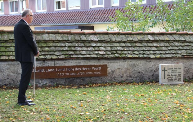 Oberlenningen. Ein Gedenkort im Garten der Oberlenninger Martinskirche erinnert seit Sonntagnachmittag an einen der mutigsten Pfarrer der württembergischen Landeskirche in der Zeit des Nationalsozialismus: Nachdem er von der Holocaust-Gedenkstätte Yad Vashem bereits als „Gerechter unter den Völkern“ geehrt worden war, weihten Landesbischof Dr. h.c. Frank Otfried July und Richard von Jan den Gedenkort für Pfarrer Julius von Jan ein.