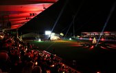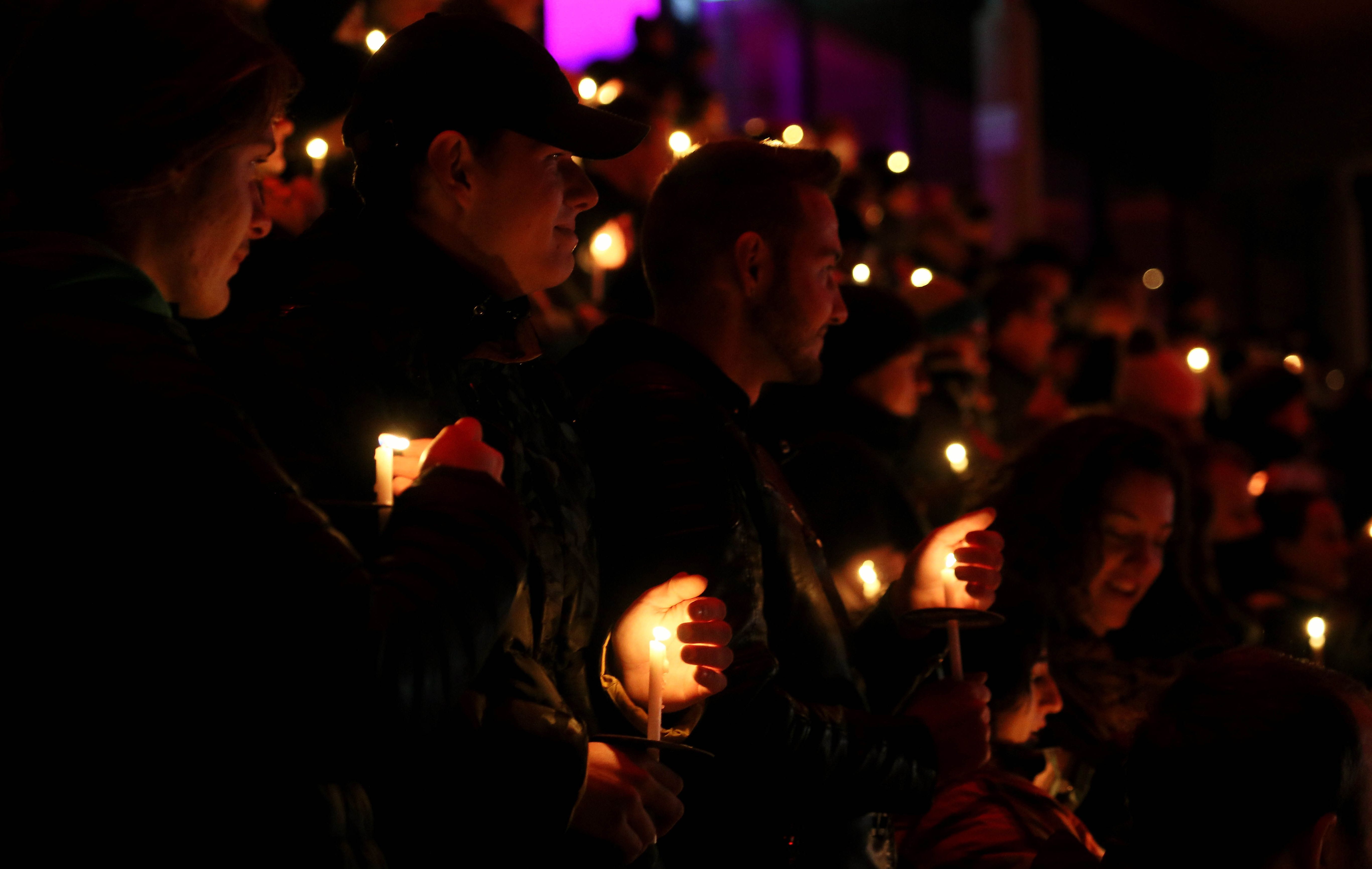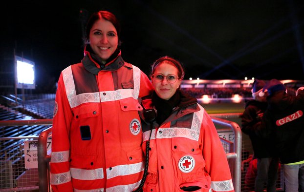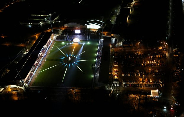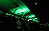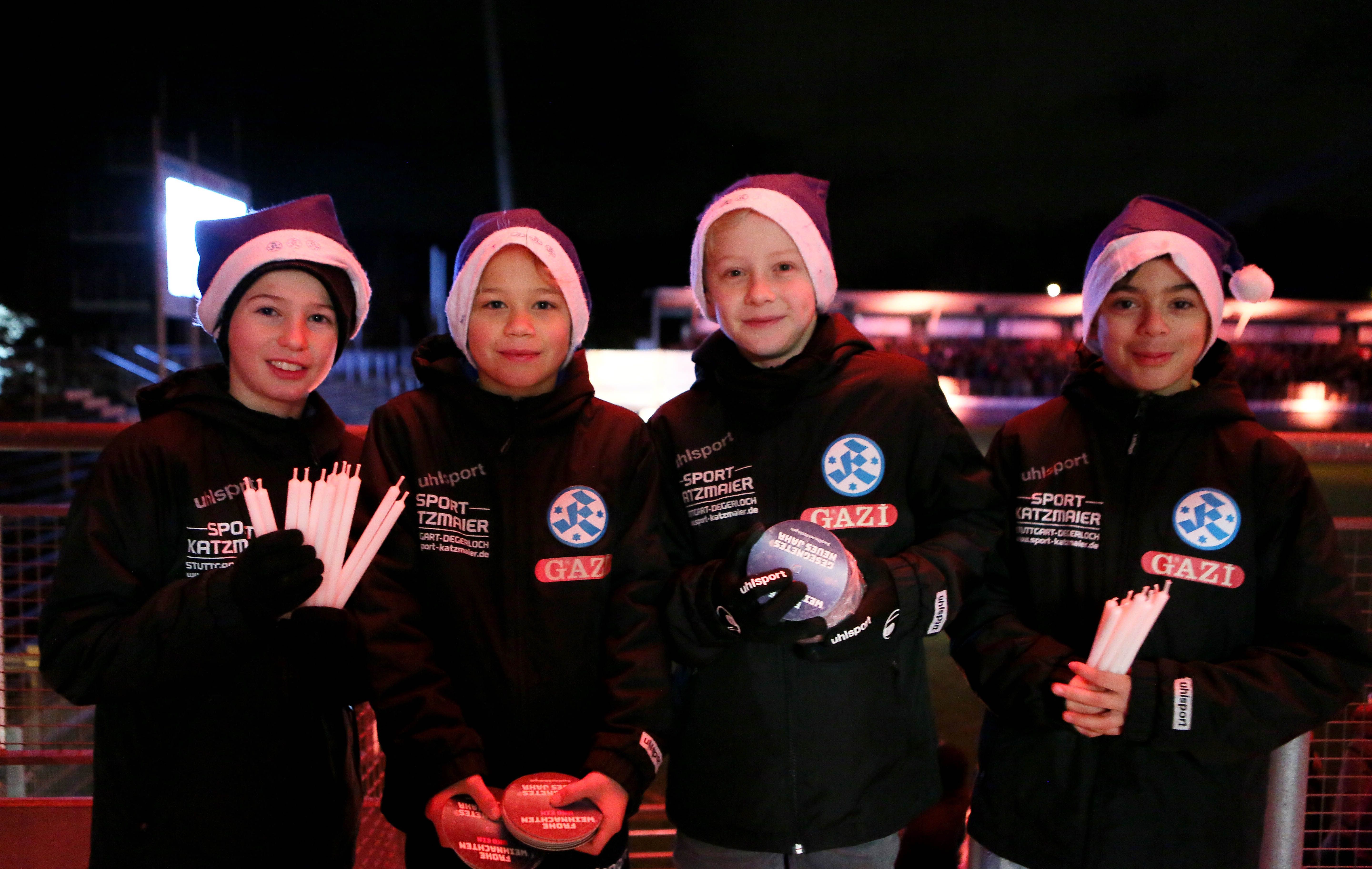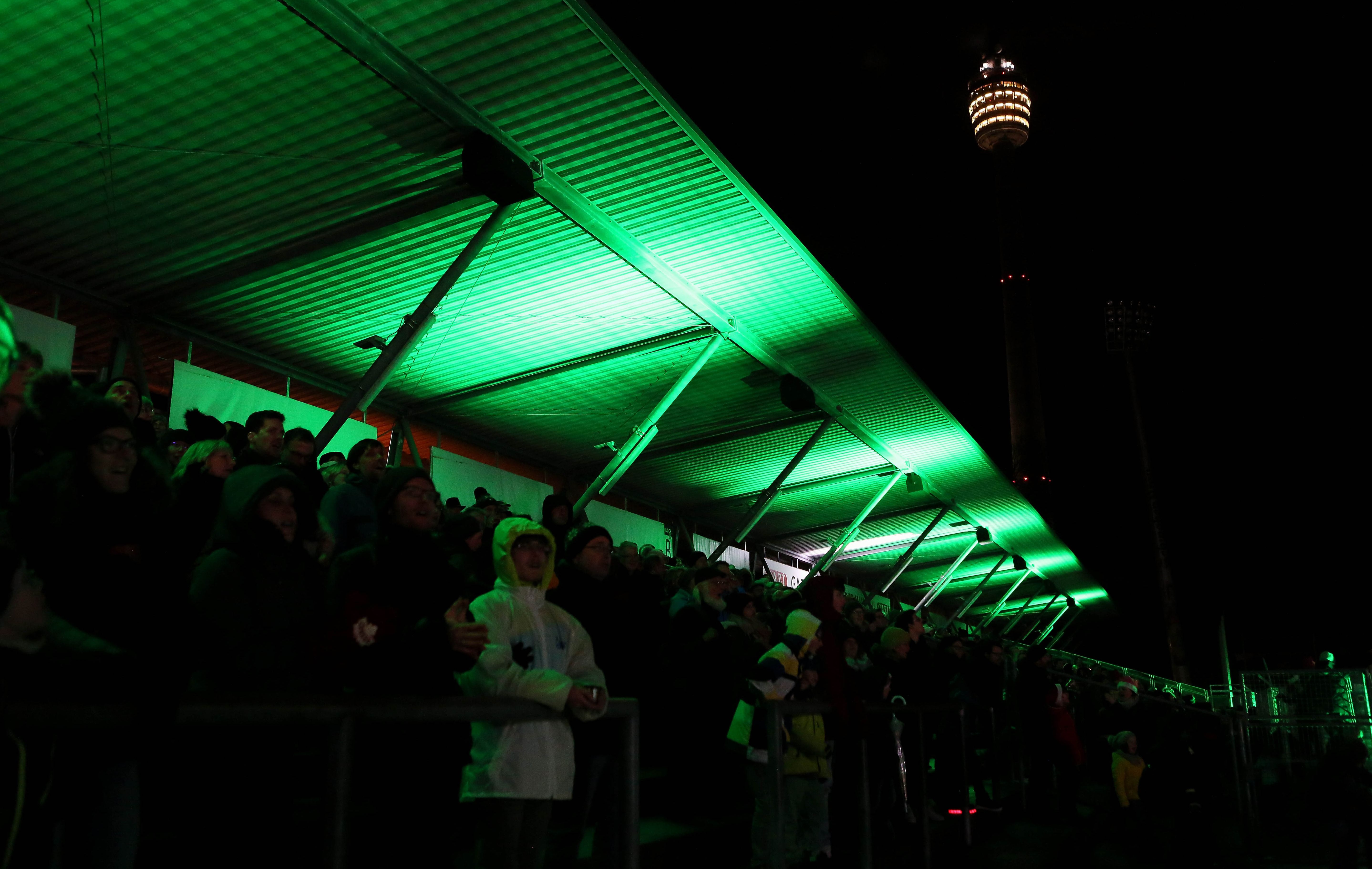 Auf dem Anstoßpunkt ein leuchtender Christbaum, am Strafraum zwei von innen erstrahlende Riesenfußbälle: Das erste Stuttgarter Weihnachtsliedersingen tauchte das Gazi-Stadion unter dem Fernsehturm in eine eigentümliche Atmosphäre. Wo sonst die Fans ihre Stuttgarter Kickers anfeuern, erklang am Sonntagabend aus rund 4.100 Kehlen eine Mischung aus Popsongs, Weihnachtschorälen und Friedensliedern.