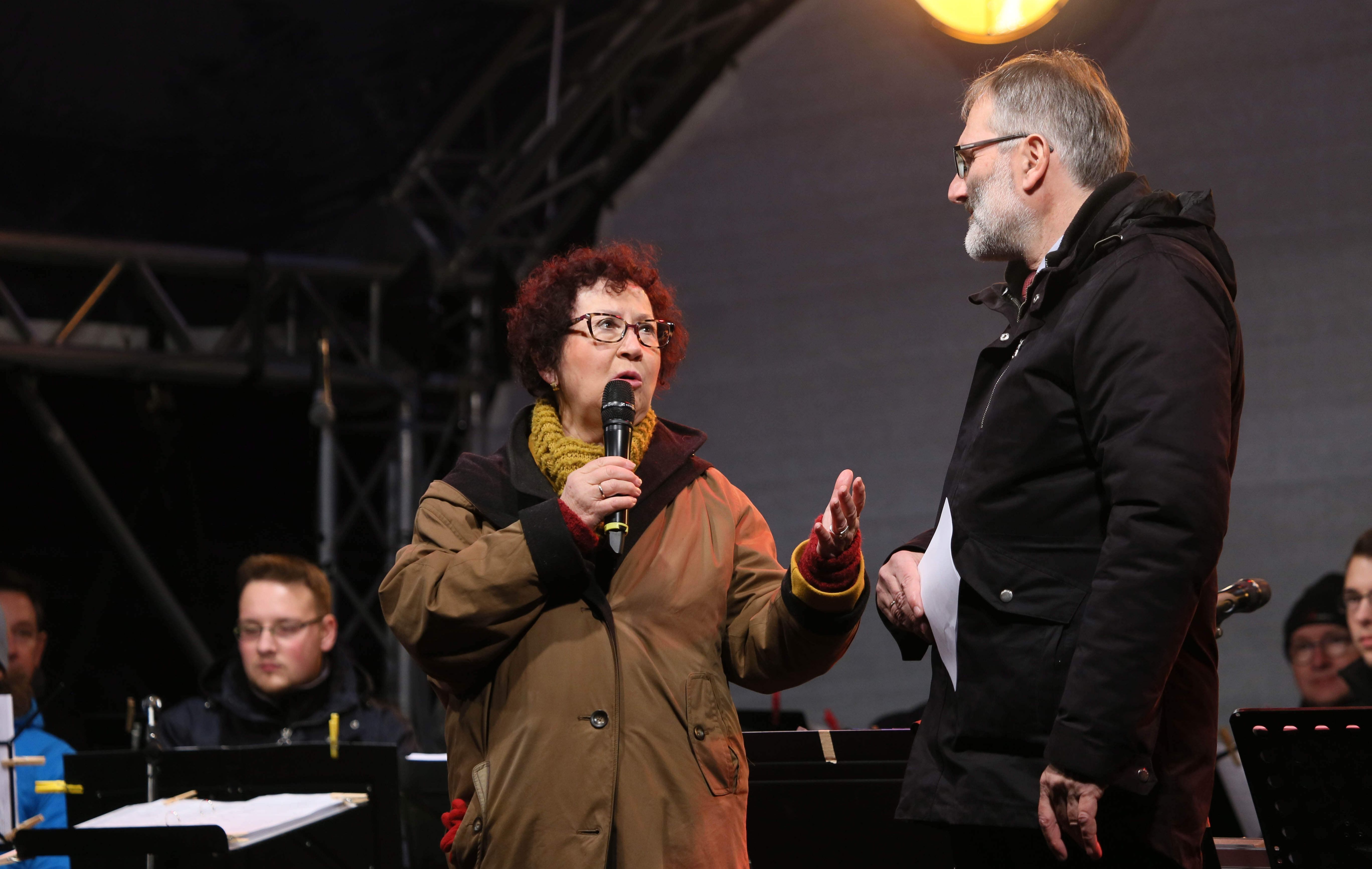 Schirmherrin Gerlinde Kretschmann las eine Weihnachtsgeschichte über einen hinkenden Hirten, der im Stall von Bethlehem eine heilsame Begegnung hatte. Sie erklärte zudem im Interview, warum sie die Veranstaltung unterstützt: „Ich wünschte mir, dass das gemeinsame Singen wieder in unsere Gesellschaft zurückkehrt.“
