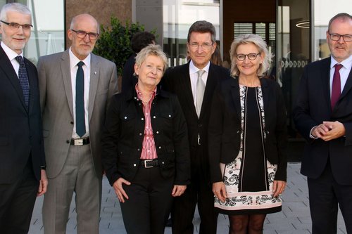 Sie diskutierten beim 15. Reutlinger Gespräch „Wirtschaft - Kirche“ über Digitalisierung und ethische Fragen (v.l.): Professor Dr. Gerhard Braun, Prälat Dr. Christian Rose, Ingrid Peters, Professor Dr. Dr. h. c. Wolfgang Huber, Dr. Daniela Eberspächer-Roth und Stefan Werner.
