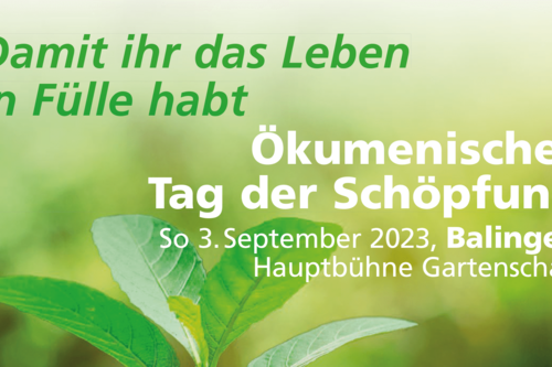 Die Arbeitsgemeinschaft Christlicher Kirchen (ACK) in Baden-Württemberg feiert den Tag der Schöpfung 2023 mit einem zentralen Gottesdienst am 3. September auf der Gartenschau in Balingen. Der Tag steht unter dem Motto „Damit ihr das Leben in Fülle habt!“ (Joh. 10,10).