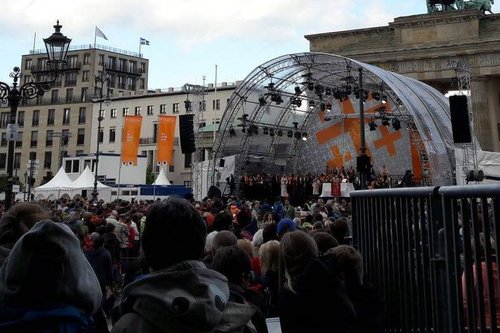 Mit drei Eröffnungsgottesdiensten, Live-Musik von Shooting-Star Max Giesinger und guter, friedlicher Stimmung unter den Besuchern fiel gestern Abend der Startschuss für den 36. Deutschen Evangelischen Kirchentag in Berlin. Unsere Kirchentagsreporter Eva Rudolf und Achim Stadelmaier mit Eindrücken vom „Abend der Begegnung“.