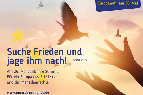 Vom 23. bis 26. Mai 2019 wählen die Bürgerinnen und Bürger der Europäischen Union zum neunten Mal das Europäische Parlament. Evangelische Christen werben für ein friedliches, weltoffenes und global gerechtes Europa.