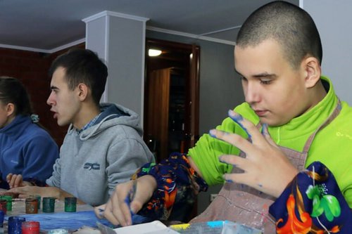Jugendliche mit Behinderungen leben im Gemeindezentrum der lutherischen Gemeinde von Togliatti ihre Kreativität aus.