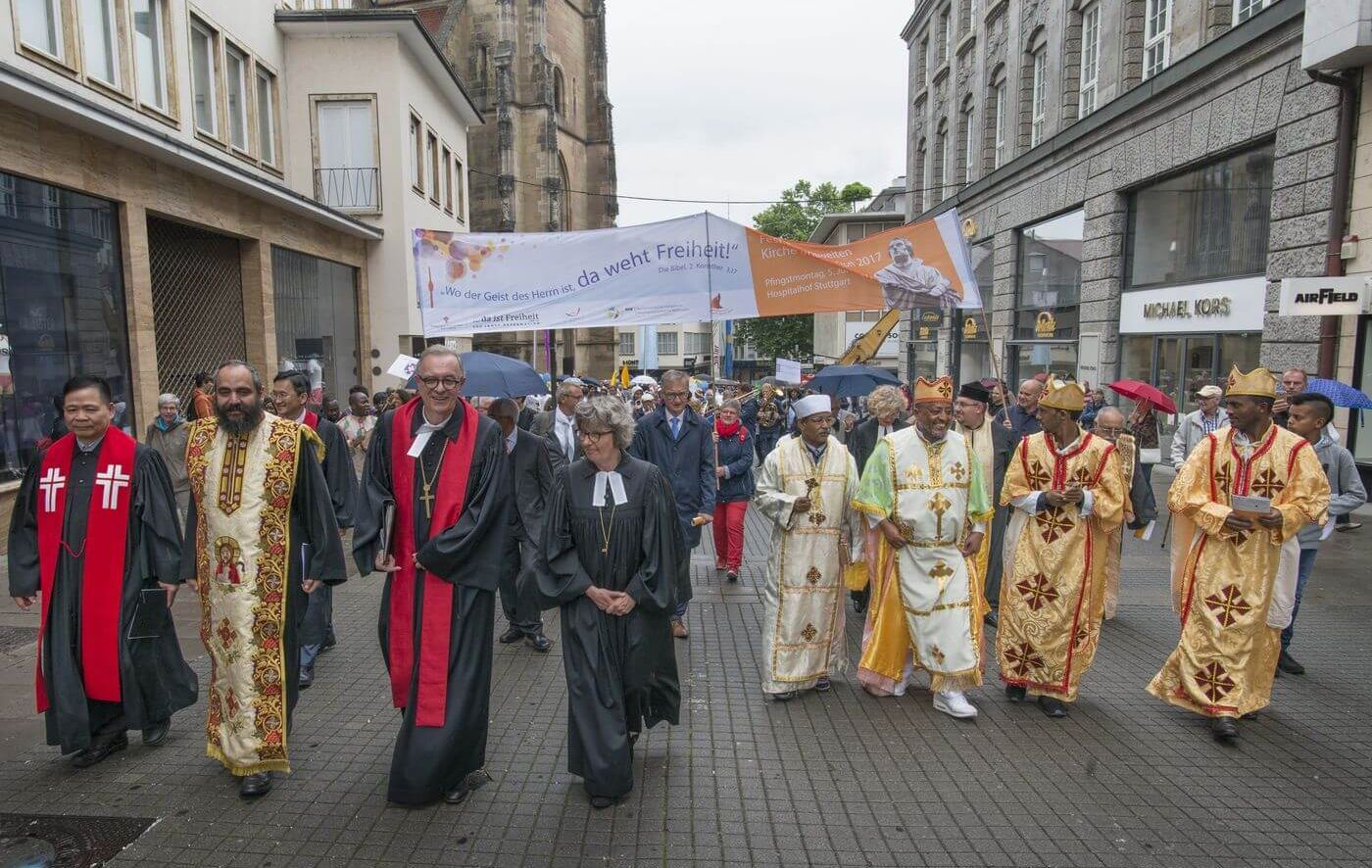 Von den Schwierigkeiten der Christen in Pakistan berichtete die katholische Theologin Affia Rose Hermle in ihrer gemeinsamen Predigt mit Landesbischof Dr. h. c. Frank Otfried July. Seit den 1980er-Jahren gelten die strengen Blasphemie-Gesetze, und die Christen leben in ständiger Angst. Sie dürfen nur niedrige Arbeiten in Textilfabriken, Ziegeleien oder der Müllbeseitigung verrichten. Doch Freiheit beschränke sich nicht auf die äußeren Umstände. „Gott kann uns eine innere Freiheit schenken.“ Das Wort „Freiheit“, sagte Landesbischof July in seinem Predigtteil, sei in der Menschheitsgeschichte beschmutzt und besudelt worden: „Freiheit ist für uns Christen mit Jesus Christus verbunden.“