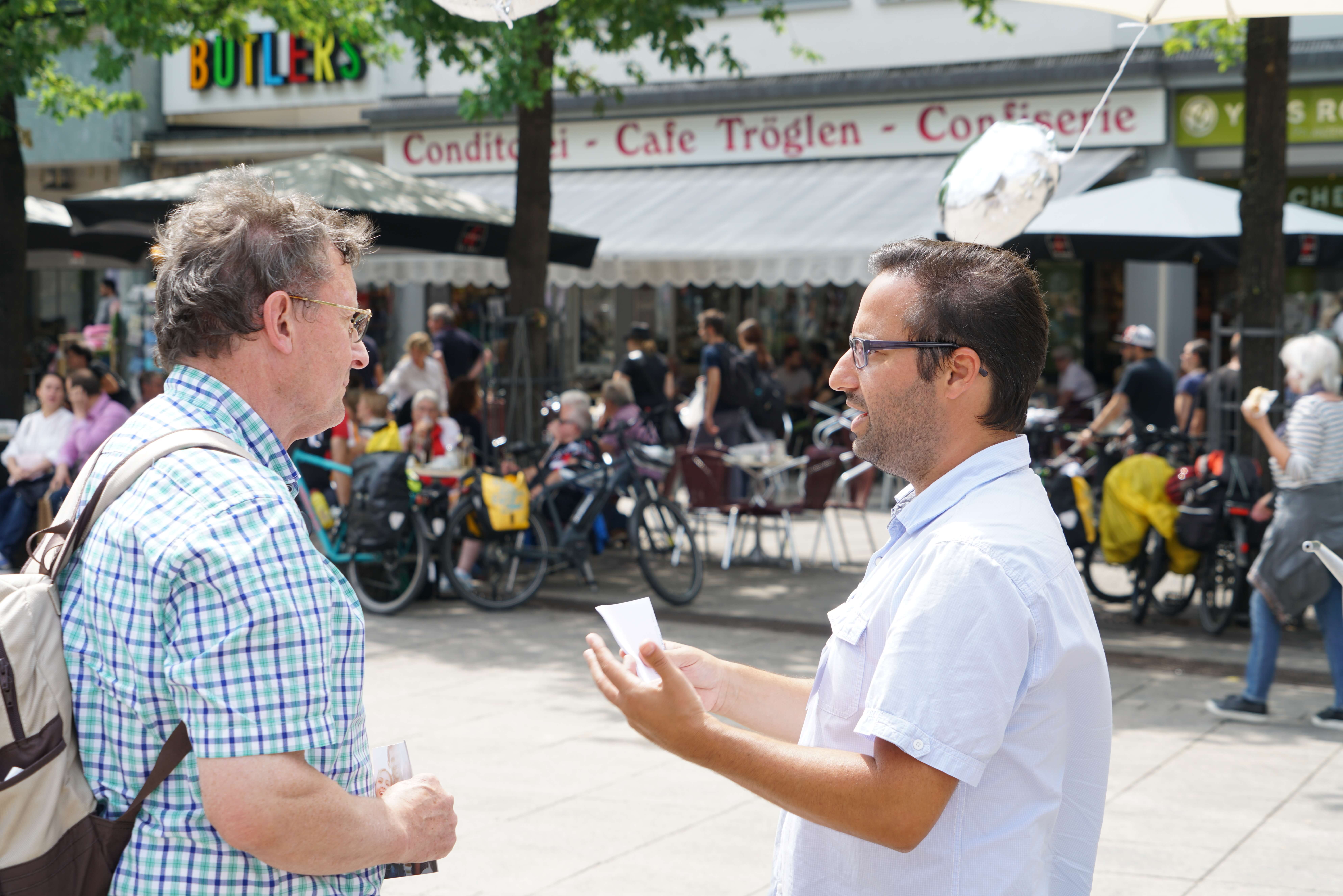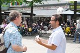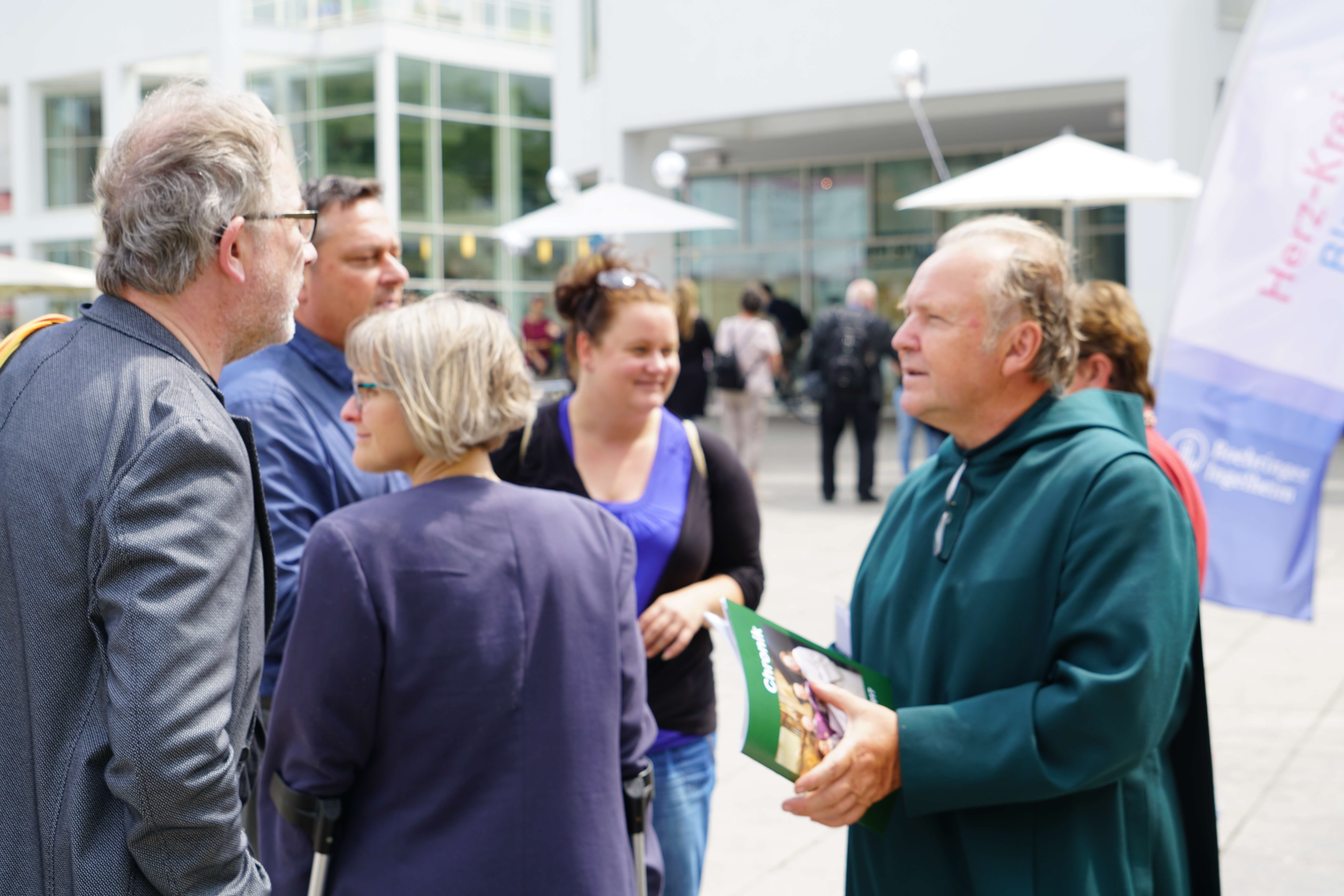 Im Anschluss veranstaltete die Landesynode auf dem Münsterplatz eine Speakers‘ Corner. Verschiedene geistliche Gemeinschaften und Einrichtungen der Landeskirche konnten sich mit ihren Anliegen an die Passanten wenden und mit ihnen ins Gespräch kommen. Vor Ort waren unter anderem der CVJM Esslingen, das Seehaus Leonberg Prisma, das Flüchtlingsdiakonat der Prälatur Ulm und die Gemeinschaft St. Michael.