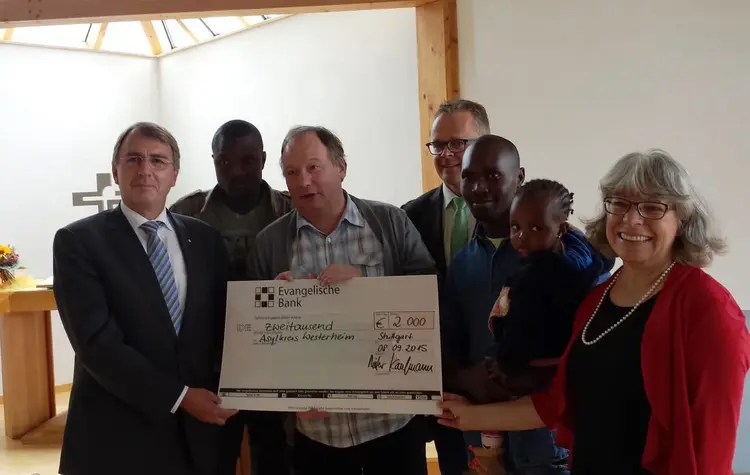 Zur Unterstützung ihres vorbildlichen Einsatzes für Flüchtlinge hat Oberkirchenrat Dieter Kaufmann, Vorstandsvorsitzender des Diakonischen Werks Württemberg, am Dienstag dem Asylkreis Westerheim finanzielle Unterstützung aus dem Fonds „Kleinprojekte mit und für Flüchtlinge“ überbracht. Die Helfer bekamen einen Scheck mit der beantragten Höchstfördersumme von 2.000 Euro im Namen von Landeskirche und Diakonie. Den Asylkreis tragen kirchliche und bürgerliche Gemeinde gemeinsam.