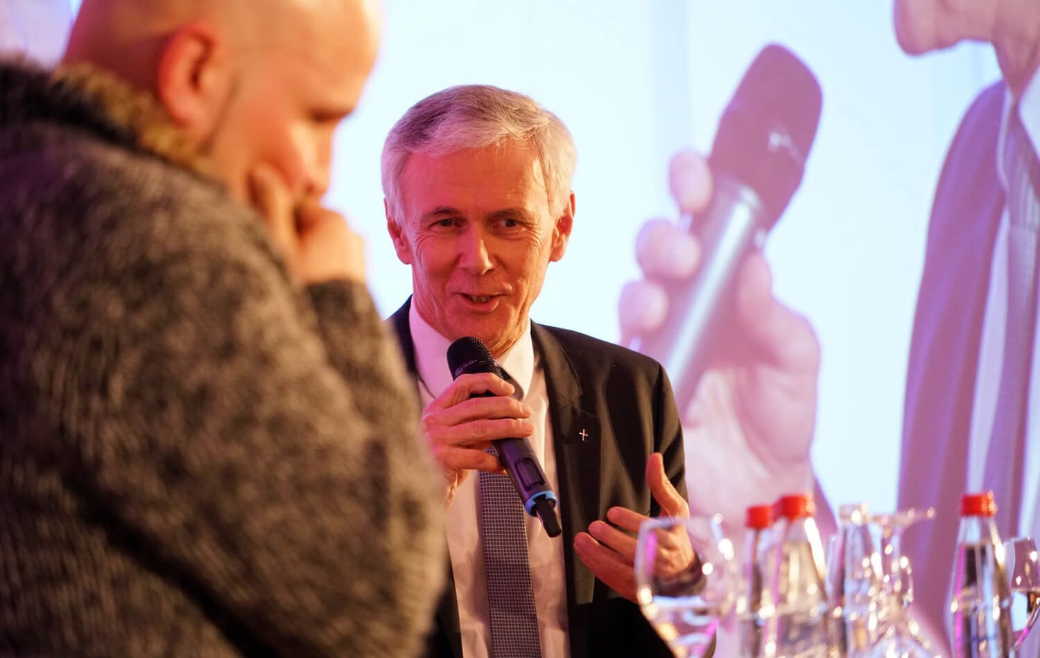 Landesbischof Jochen Cornelius-Bundschuh aus Baden beim Podiumsgespräch (rechts).