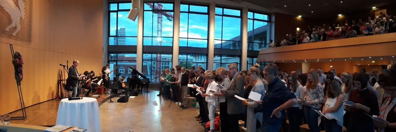 Wird es halten oder macht das Wetter einen Strich durch die Rechnung? Diese Frage beschäftigte viele Veranstalter der „Nacht der Freiheit“. Der „Nachtschicht“-Gottesdienst, der auf dem Stuttgarter Marktplatz hätte stattfinden sollen, wurde sicherheitshalber in den großen Saal des Rathauses verlegt. Dort drängelten sich dann auch zahlreiche Besucher, als Pfarrer Ralf Vogel den Gottesdienst schließlich unter musikalischer Begleitung des „Orchesters der Kulturen“ um 20.30 Uhr eröffnete. „Was du nicht siehst“ war das Thema, über das er mit seinen Gästen, dem Stuttgarter Oberbürgermeister Fritz Kuhn, der Stuttgarter Prälatin Gabriele Arnold und dem schwäbischen Kabarettisten Dominik Kuhn alias Dodokay, sprach. „Menschen müssen sich weiterentwickeln können – und das geht nur durch Freiheit als einem Grundrecht“, sagte Dodokay, der sich auf der Bühne die Freiheit herausnimmt, über seine Landsleute, die Schwaben, zu witzeln. Für Prälatin Gabriele Arnold bedeutet Freiheit, das sagen zu können, was sie denkt und glaubt, die zentrale Errungenschaft der Reformation. Und das, so Arnold, sei wahrlich ein Grund zu feiern.