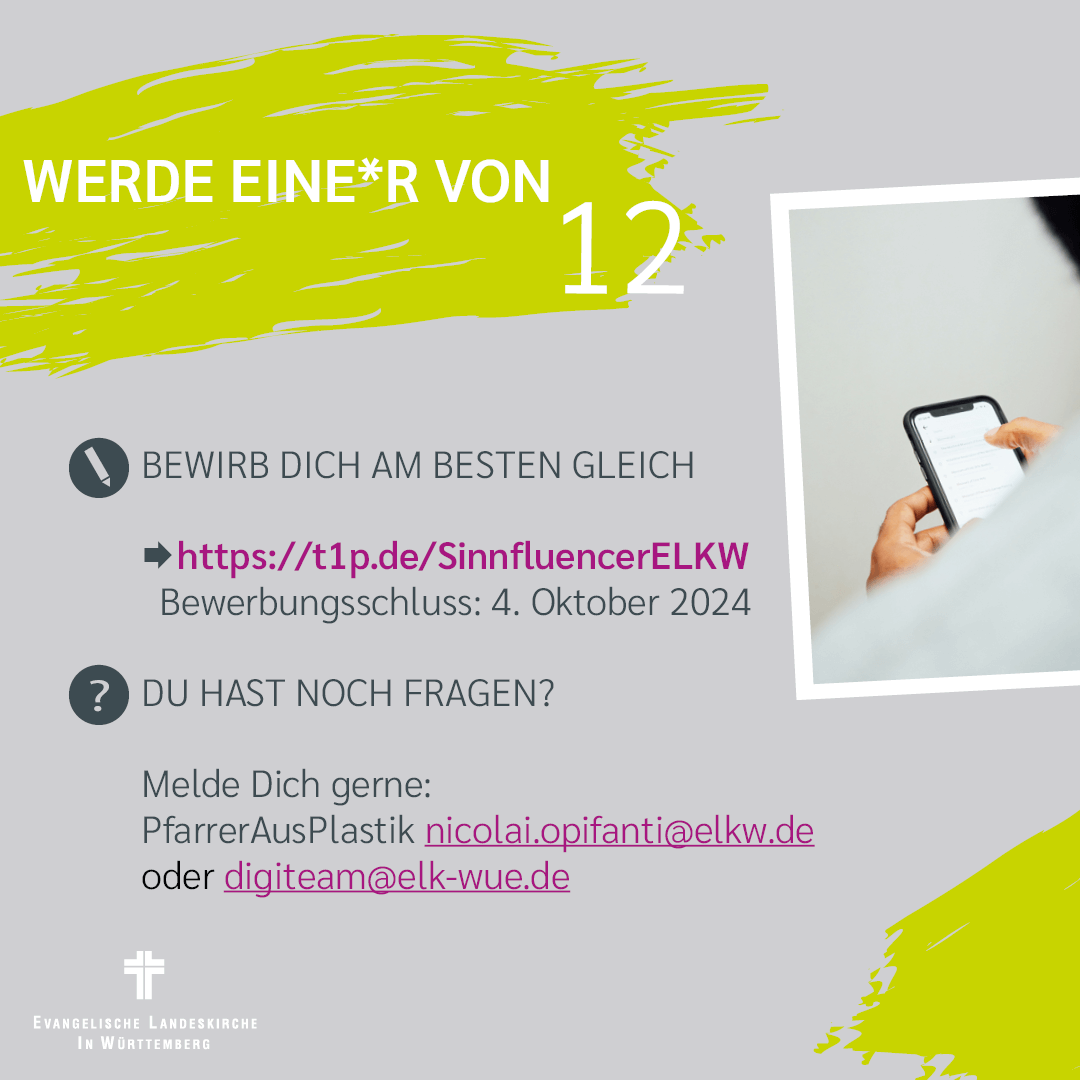 Die Evangelische Landeskirche in Württemberg sucht zwölf engagierte und motivierte Social Media-Schaffende für ein Sinnfluencer-Pro-Netzwerk. Ziel ist die Förderung der Glaubenskommunikation in sozialen Netzwerken. Interessierte können sich bis zum 4. Oktober bewerben.