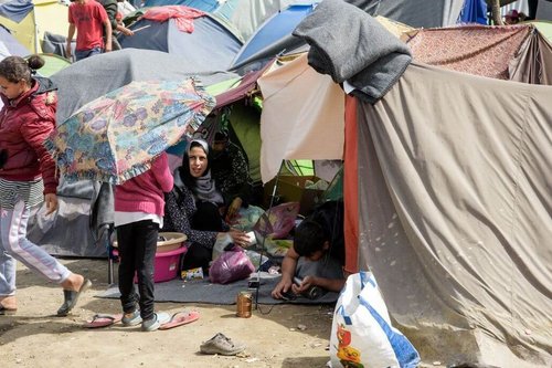 Fluechtlingslager Idomeni an der Grenze zu Mazedonien im April 2016. Insgesamt leben in dem provisorischen Lager zurzeit etwa 10.000 bis 15.000 Menschen, nachdem vor einigen Wochen die Laender entlang der Balkanroute ihre Grenzen geschlossen hatten.
