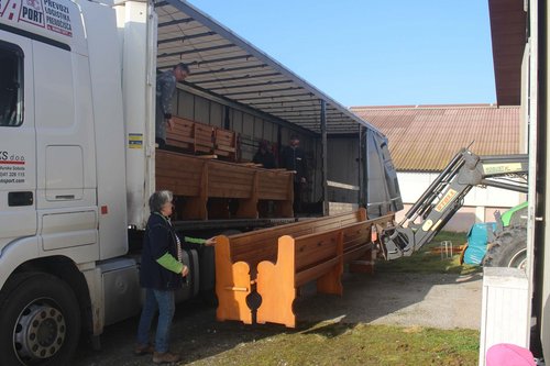 Verladung der Bänke.