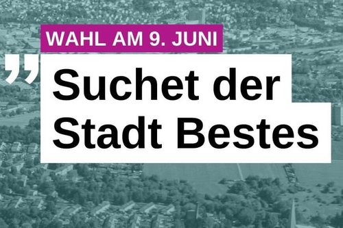 „Suchet der Stadt Bestes“ - so ruft uns der Prophet Jeremia im 29. Kapitel zu. Dazu gehört heute in einer Demokratie auch der Gang an die Wahlurne. Wir bitten Sie: Gehen Sie am 9. Juni zur Wahl und helfen Sie mit, unser aller Gemeinwesen gut zu gestalten