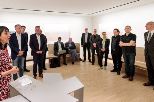 Landtagspräsidentin Muhterem Aras (Grüne) begrüßte die Gäste zur Einweihung des „Raums der Stille" im Untergeschoss des Landtagsgebäudes.