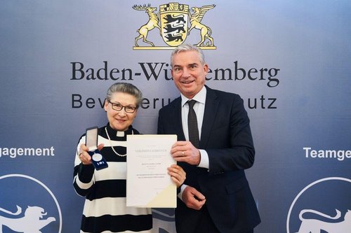 Die langjährige Landespfarrerin für Polizei und Notfallseelsorge der württembergischen Landeskirche, Eva-Maria-Agster, wurde am Samstag, 9. Dezember, mit dem Ehrenzeichen für Bevölkerungsschutz ausgezeichnet.