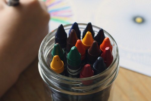 Ein Kind mal mit Wachsmalfarben.