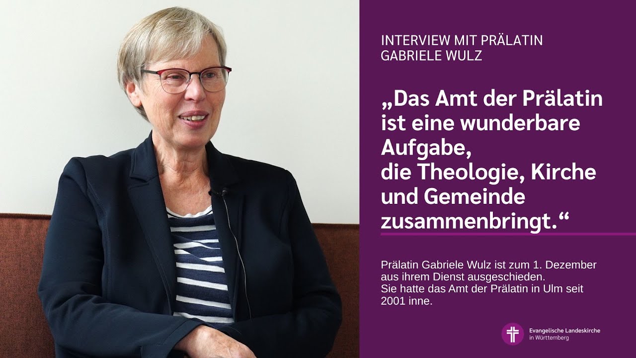 Gabriele Wulz sagt über ihre Zeit als Prälatin: „Ich blicke sehr dankbar auf 24 Jahre als Prälatin von Ulm zurück. Das Amt der Prälatin ist eine wunderbare Aufgabe, die Theologie, Kirche und Gemeinde zusammenbringt. Man ist nicht in erster Linie administrativ tätig, nicht Teil des Dienstwegs und lernt trotzdem viele Schaltstellen unserer Kirche kennen. Es ist ein geistliches Amt. Man hat kein Budget, keine Stellen, keinen Stab, kein Personal. Man hat nur die Kraft des Wortes und das Vertrauen darauf, dass dieses Wort etwas austragen kann. Manchmal gelingt das und manchmal misslingt es auch.“ Über die Zukunft der Kirche sagt Wulz: „Die Bedeutung von Kirche wird eine andere werden. Wir befinden uns in Transformationsprozessen: Der Pfarrdienst verändert sich, die Gemeindestruktur verändert sich, das Ehrenamt verändert sich. Diese Veränderungen waren bei meinem Amtsantritt 2001 schon präsent. Dass sich Kirche verändert, ist ein kontinuierlicher Prozess.“