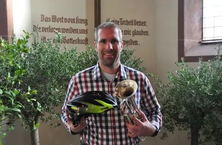 Auf dem Weg zum Landesposaunentag wird Thomas Hasenmaier vom 19. Juni bis 28. Juni mit dem Rad durch alle evangelischen Kirchenbezirke in Württemberg fahren. Mit dabei: seine Trompete. Er freut sich übers Mitradeln, Mitmusizieren und gemeinsame Andachten.