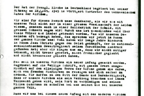Auf einer Ratstagung der neugebildeten EKD wurde am 19. Oktober 1945 in Stuttgart ein Text verlesen und verabschiedet, der in die Kirchengeschichte eingegangen ist.