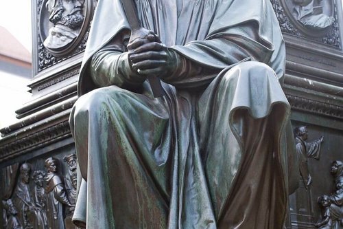 Die Skulptur von Johann Huss am Lutherdenkmal in Worms. Der Tscheche wurde 1415 auf dem Konzil zu Konstanz als Ketzer verbrannt.