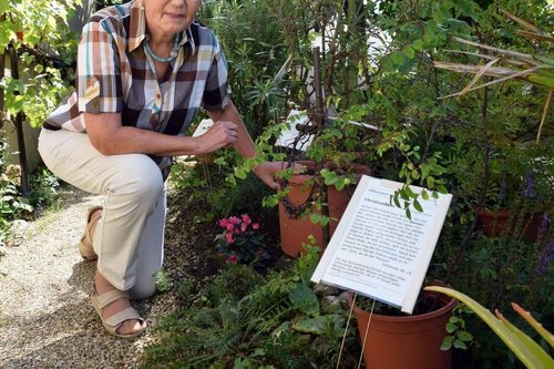 Christa Hahn ist stolz auf den kleinen Bibelgarten. Zusammen mit anderen Ehrenamtlichen hat sie ihn angelegt.