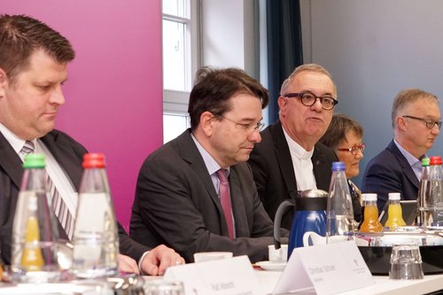 Wichtig war uns auch, dass der Arbeitsplatz schön ist. Ich sag's ganz bewusst, dass die Dinge farblich zusammenpassen und dass sich die Mitarbeitenden hier auch wohlfühlen. Wir möchten, dass Mitarbeitende gerne hier an diesen Arbeitsplatz kommen, weil wir der Überzeugung sind, dass ein solches Umfeld auch das Arbeiten erleichtert und positiv beeinflusst. Der Oberkirchenrat ist auch ein Ort des Austausches. Und ich glaube, auf diesen Austausch wird es sehr ankommen, wenn wir gute, angemessene und gemeinsam zu vertretende Lösungen für unsere Kirche jetzt und in der Zukunft finden wollen.