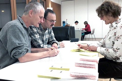 Ehrenamt am Sonntagabend: die Wahlhelfer in Stuttgart-Degerloch.