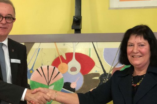 Am 18. Dezember hat die Künstlerin Annelen Schünemann-Kroner dem Oberkirchenrat ihr Bild „Löwenzahn“ geschenkt und Landesbischof Frank Otfried July überreicht. Annelen Schünemann-Kroner ist in verschiedenen Kinderheimen aufgewachsen, auch in einem in der Stuttgarter Gänsheide und hat Missbrauch erlebt.