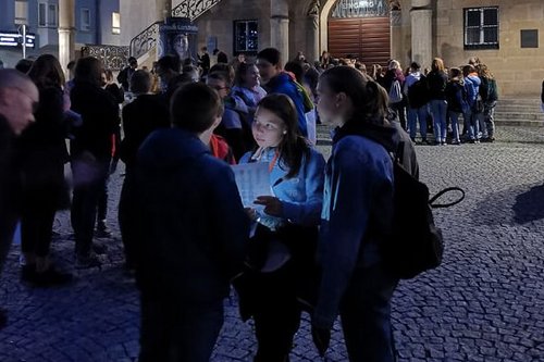 Nach dem Auftakt in der Leonhardskirche ging's bei der Stadtrallye durchs abendliche Stuttgart.