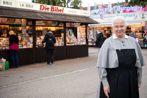 Bierzelt, Pommesbude, Riesenrad: Das ist der Cannstatter Wasen. Doch auf dem Volksfest tummeln sich auch Exoten. Zum Beispiel die Aidlinger Schwestern, die dort seit 85 Jahren Bibeln verkaufen. Und nebenbei auch noch Spaß haben am zweitgrößten Volksfest Deutschlands.