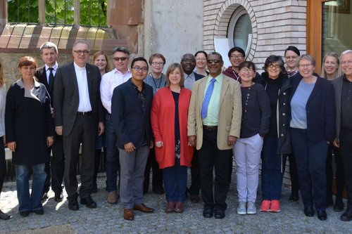 Gäste der ersten ökumenischen Visite in Württemberg zusammen mit Landesbischof July und Kirchenrat Klaus Rieth