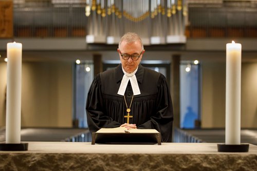Wichtig war uns auch, dass der Arbeitsplatz schön ist. Ich sag's ganz bewusst, dass die Dinge farblich zusammenpassen und dass sich die Mitarbeitenden hier auch wohlfühlen. Wir möchten, dass Mitarbeitende gerne hier an diesen Arbeitsplatz kommen, weil wir der Überzeugung sind, dass ein solches Umfeld auch das Arbeiten erleichtert und positiv beeinflusst. Der Oberkirchenrat ist auch ein Ort des Austausches. Und ich glaube, auf diesen Austausch wird es sehr ankommen, wenn wir gute, angemessene und gemeinsam zu vertretende Lösungen für unsere Kirche jetzt und in der Zukunft finden wollen.