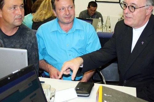 Landesbischof Dr. h. c. Frank Otfried July im Gespräch mit Teilnehmern des Fernkurses "Energiemanagement kompakt".