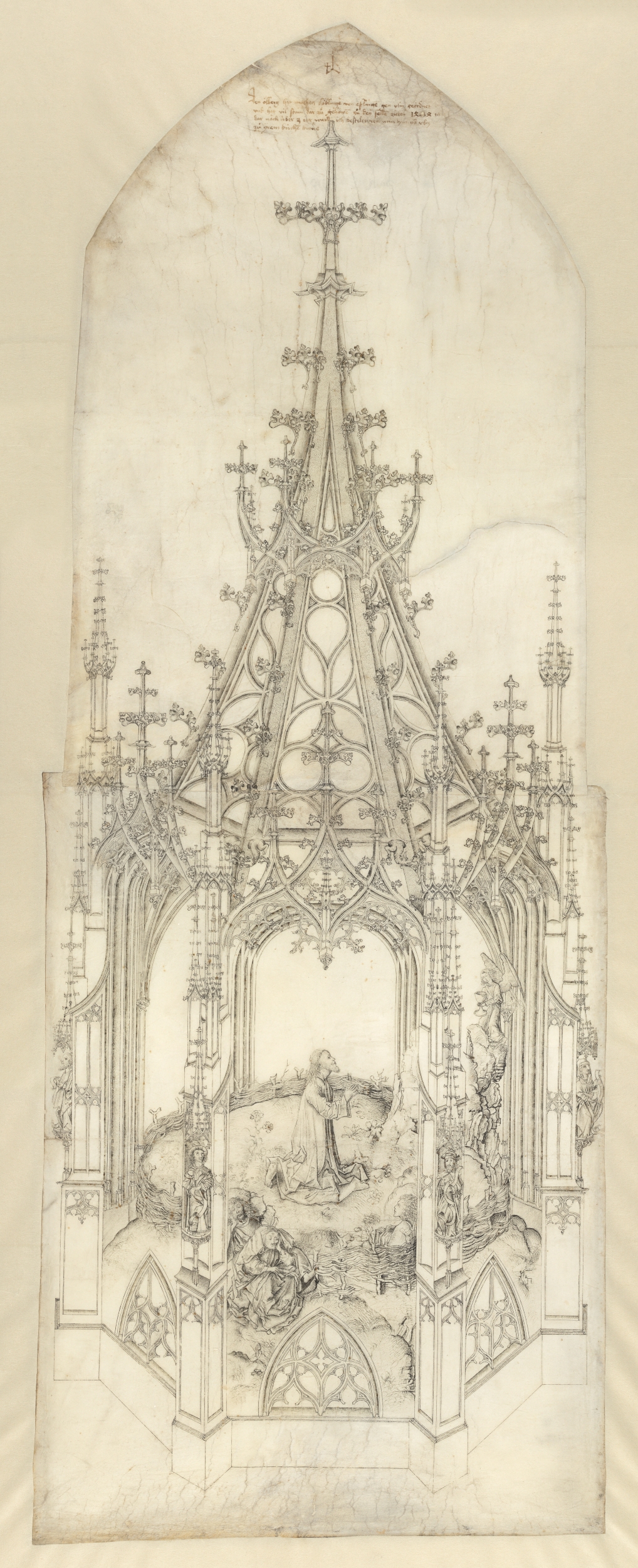 • Stadtarchiv Ulm, E Münsterbauamt 1: Ölbergriss von Matthäus Böblinger, ca. 111 x 42 cm, Datierung: 1474-1505