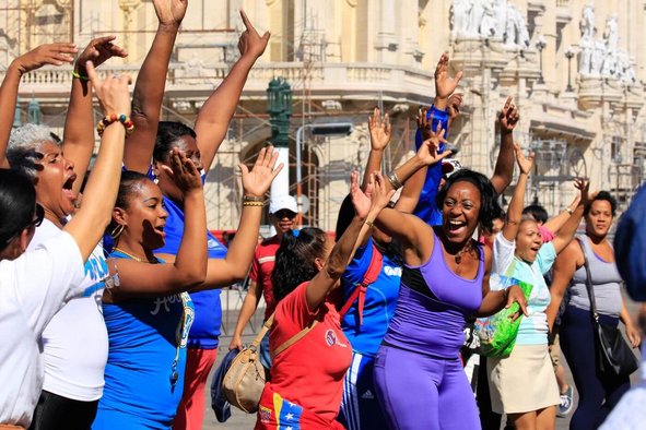 Offizielle Zahlen zur Religionszugehörigkeit gibt es nicht. Der Großteil der rund 11,4 Mio. Kubaner/innen ist römisch-katholisch. Eine wichtige Rolle im spirituellen Leben vieler Menschen spielt die afrokubanische Religion Santería. Nach Jahrzehnten der Unterdrückung und Isolation ist Kuba seit 1992 ein laizistischer Staat mit mehr Spielräumen für die Kirchen.