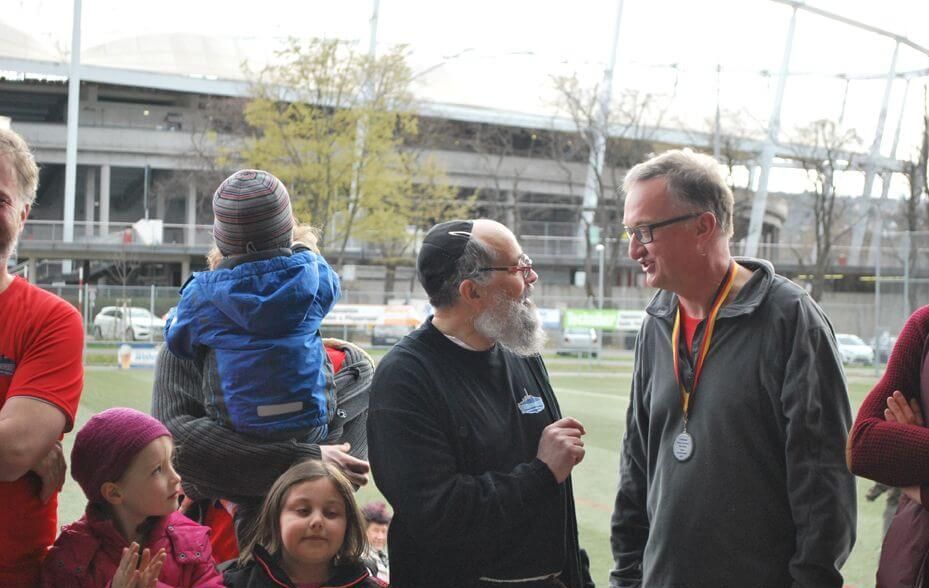 Und wie verlief überhaupt das Spiel? Die Württemberger legten bereits nach zwei Minuten das erste Tor vor, und bis zum 5:1 konnten sie ihren Vorsprung immer weiter ausbauen. Dann aber erwachte die badische Mannschaft und holte kontinuierlich auf. Das Endergebnis war dann irgendwie im Sinne aller: mit einem Unentschieden, 5:5, liefen schließlich alle hochzufrieden vom Platz. Denn gewonnen hatte das friedliche Miteinander.