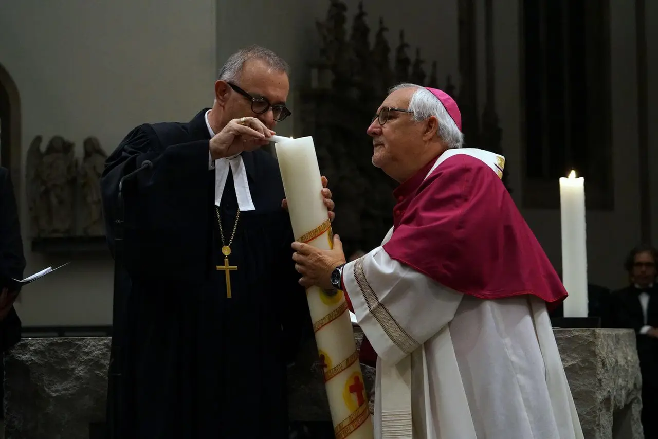 „Im Mittelpunkt unseres ökumenischen Abendgebets steht unser gemeinsamer Glaube an Jesus Christus. Er ist das Licht der Welt“, so Landesbischof July. Symbolisch entzündeten die beiden Bischöfe im Gottesdienst eine Kerze und sprachen gemeinsam das Glaubensbekenntnis. Bischof Fürst betonte, dass bei aller Verschiedenheit niemals das sakramentale Band zerrissen sei, das in der Taufe begründet ist. „Die Besinnung auf Jesus Christus, die Heilige Schrift, das gemeinsame Gebet und ein diakonisches Miteinander können die Gemeinschaft der Christen stärken“, so Fürst weiter.