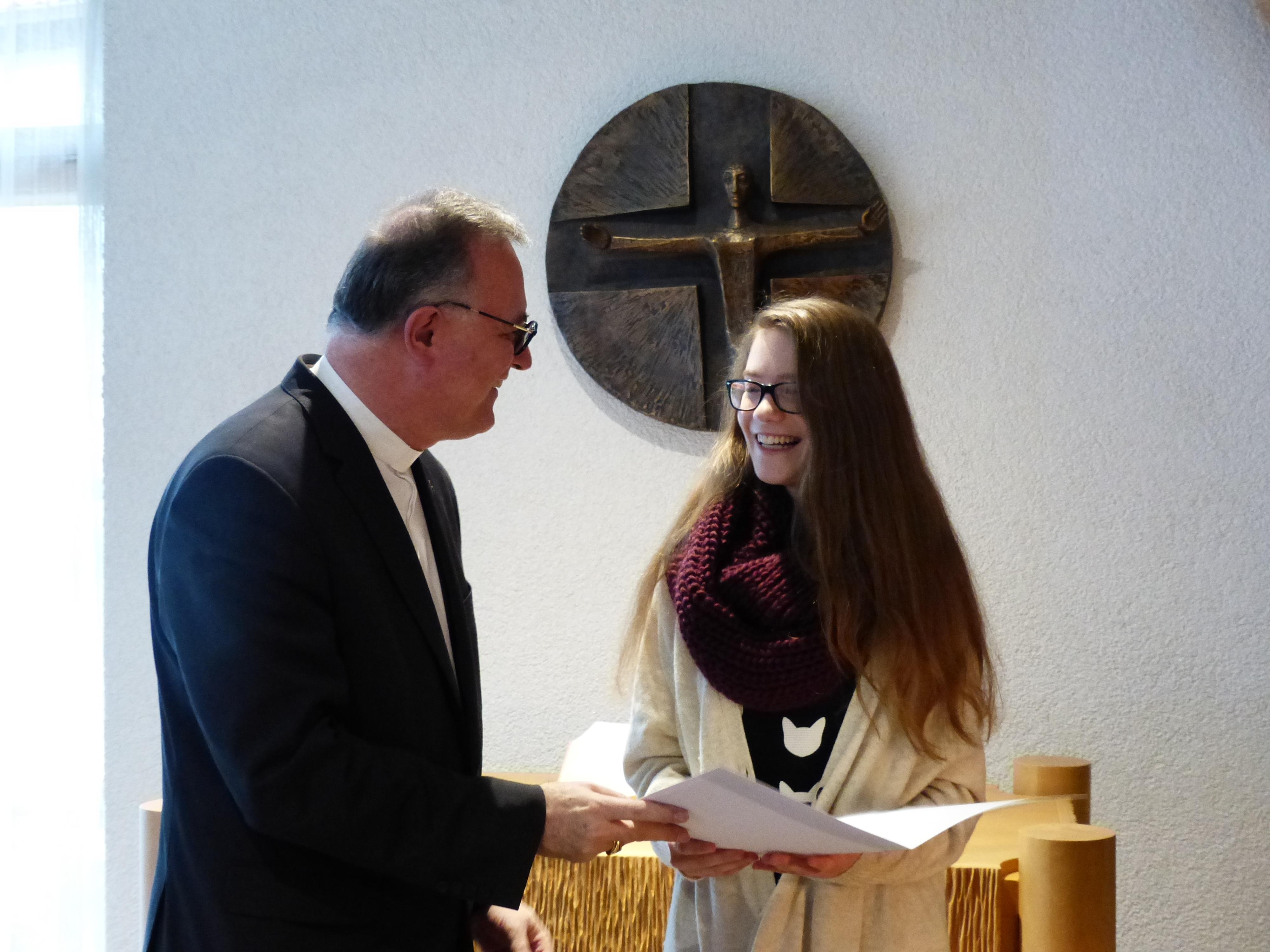 July verwies in seiner Ansprache darauf, wie sehr gerade in diesen Tagen über Glaube, Gesellschaft und Kultur nachgedacht würde: „Die Attentate in Paris und vergleichbare Anschläge auf die Freiheit, den Frieden und das Leben von Menschen anderswo zeigen, dass eine Kultur der Toleranz, des Gesprächs, der kritischen Diskussion – oder in christlicher Sprache: der Nächstenliebe – überlebensnotwendig ist.“ Er freue sich über die Arbeiten und danke den Schülerinnen und Schülern, dass sie in ihrer Sprache und mit ihren Vorstellungen Auskunft und Aufklärung darüber geben würden, was junge Leute heute über Christentum und Kultur denken.