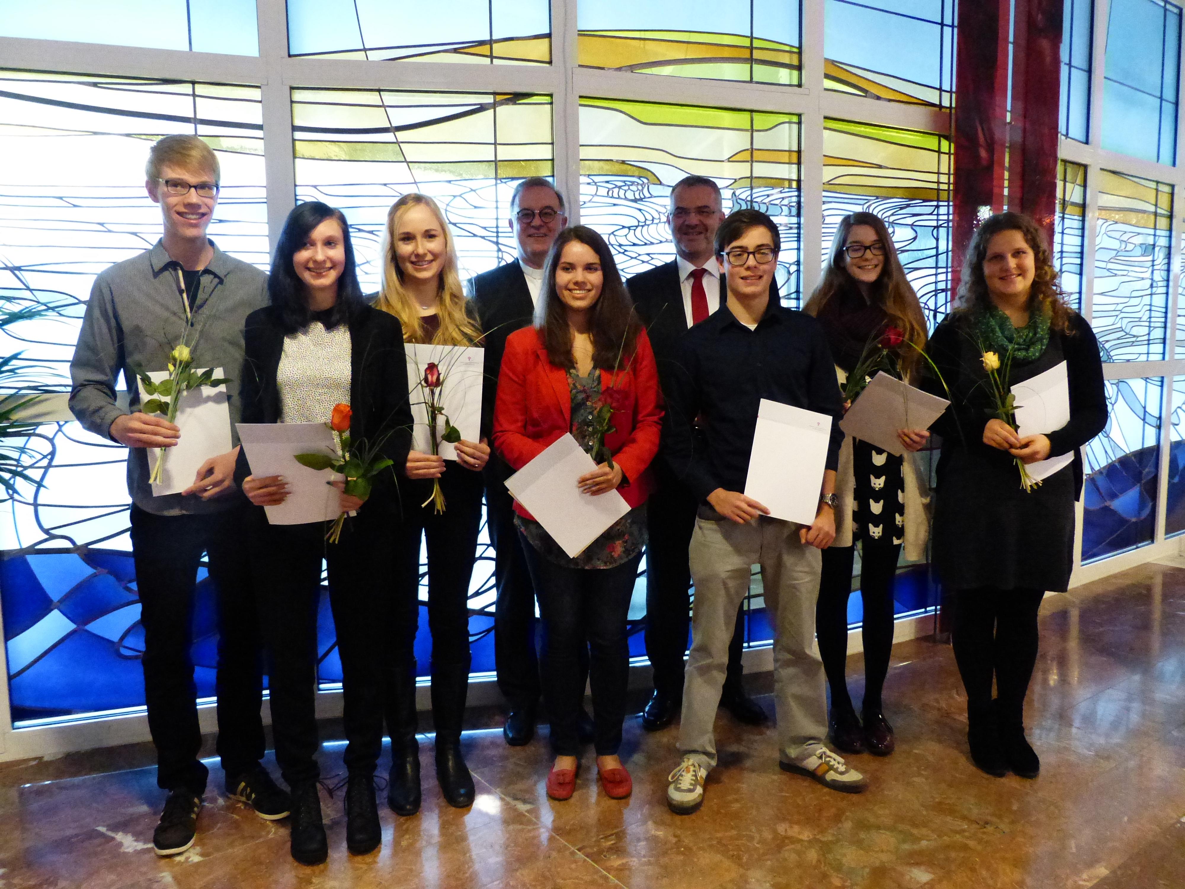 Buchpreise gingen an: Christopher Bischof vom Karl-von-Frisch-Gymnasium Dußlingen (Landkreis Tübingen), Nicole Rüttgers von den St. Ursula Schulen Freiburg, Jutta Wehlan und Svea Berberich vom Evangelischen Heidehof- Gymnasium Stuttgart, Katrin Jörger von der Heimschule Lender Sasbach (Ortenaukreis), Andrea Bleil sowie Mike Lebzelter von der Maria-von-Linden-Schule Heidenheim, Silvia und Katharina von Zedtwitz vom Berthold-Gymnasium Freiburg und Hannah Weiwadel vom Quenstedt-Gymnasium Mössingen (Landkreis Tübingen).