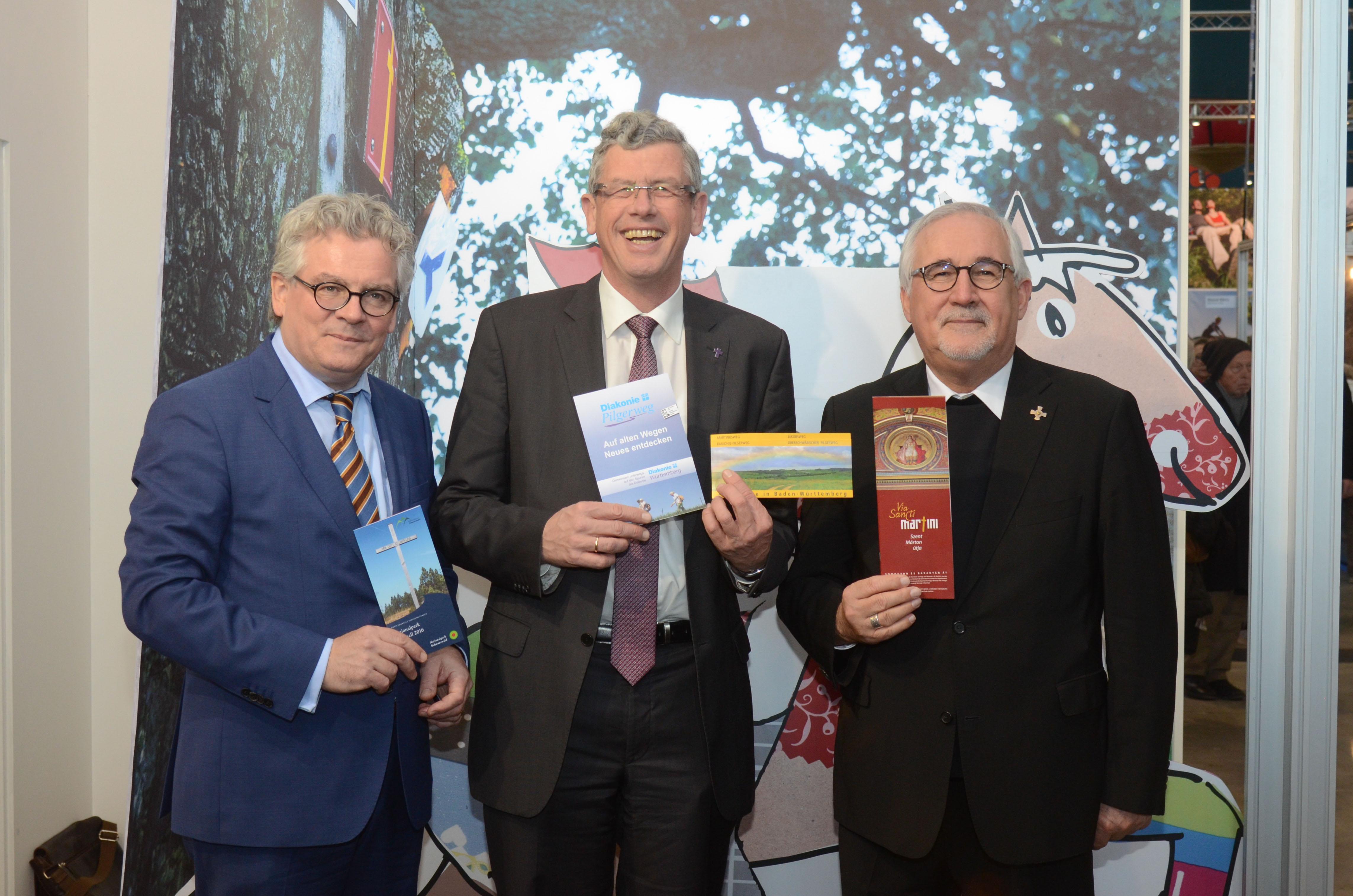 Stuttgart/Rottenburg. Unter dem Motto „Geh mit Gott – Pilgern in Baden-Württemberg“ haben die beiden großen Kirchen in Württemberg das spirituelle Wandern und Reisen in den Blick genommen. Noch bis Sonntag stellen die Evangelische Landeskirche in Württemberg und die Diözese Rottenburg-Stuttgart auf der Touristikmesse CMT in Stuttgart ihre Ferien- und Freizeitangebote vor. Beim gemeinsamen Empfang auf der CMT betonten beide Kirchen am Donnerstag (21. Januar) die Bedeutung des Pilgerns für das eigene Leben.