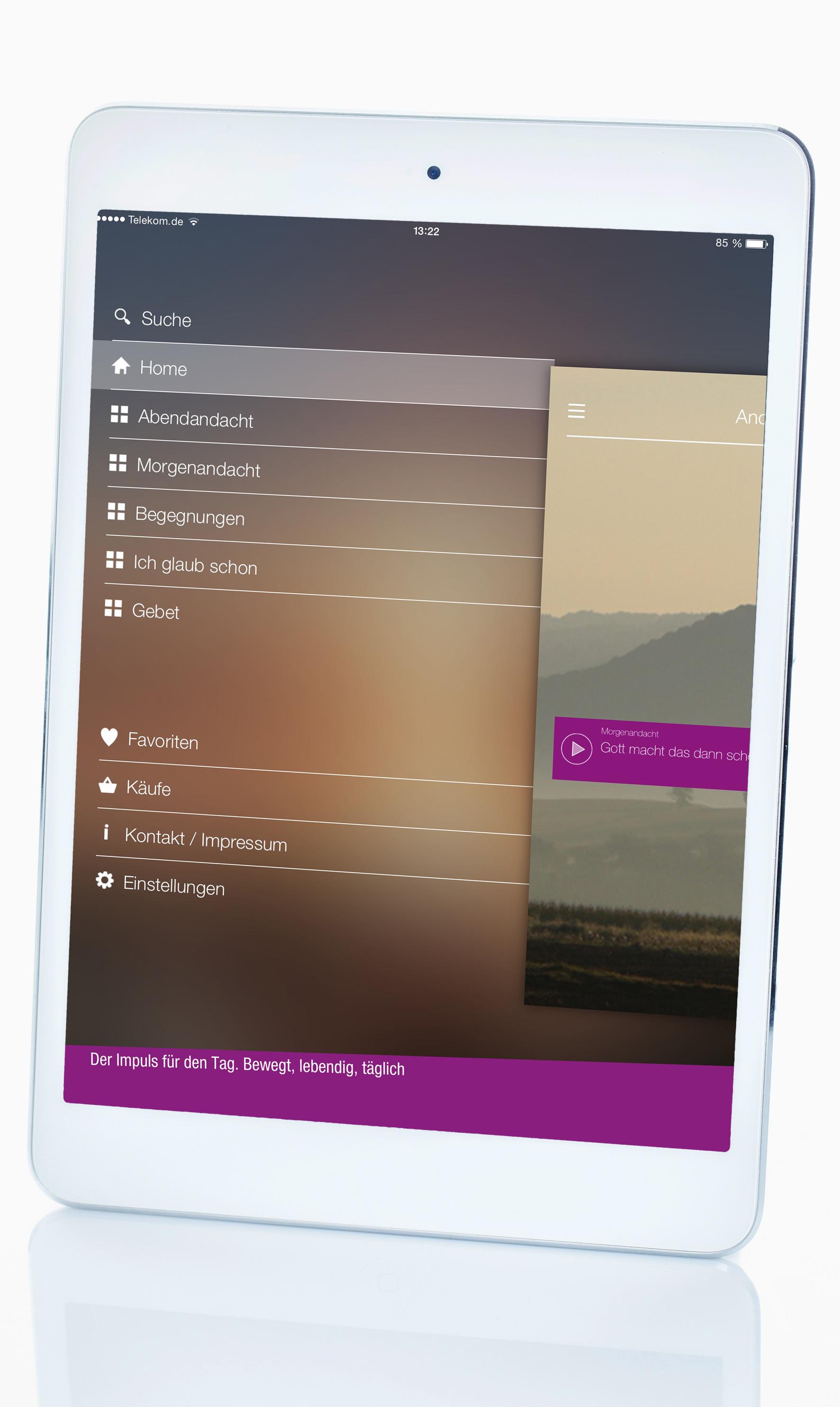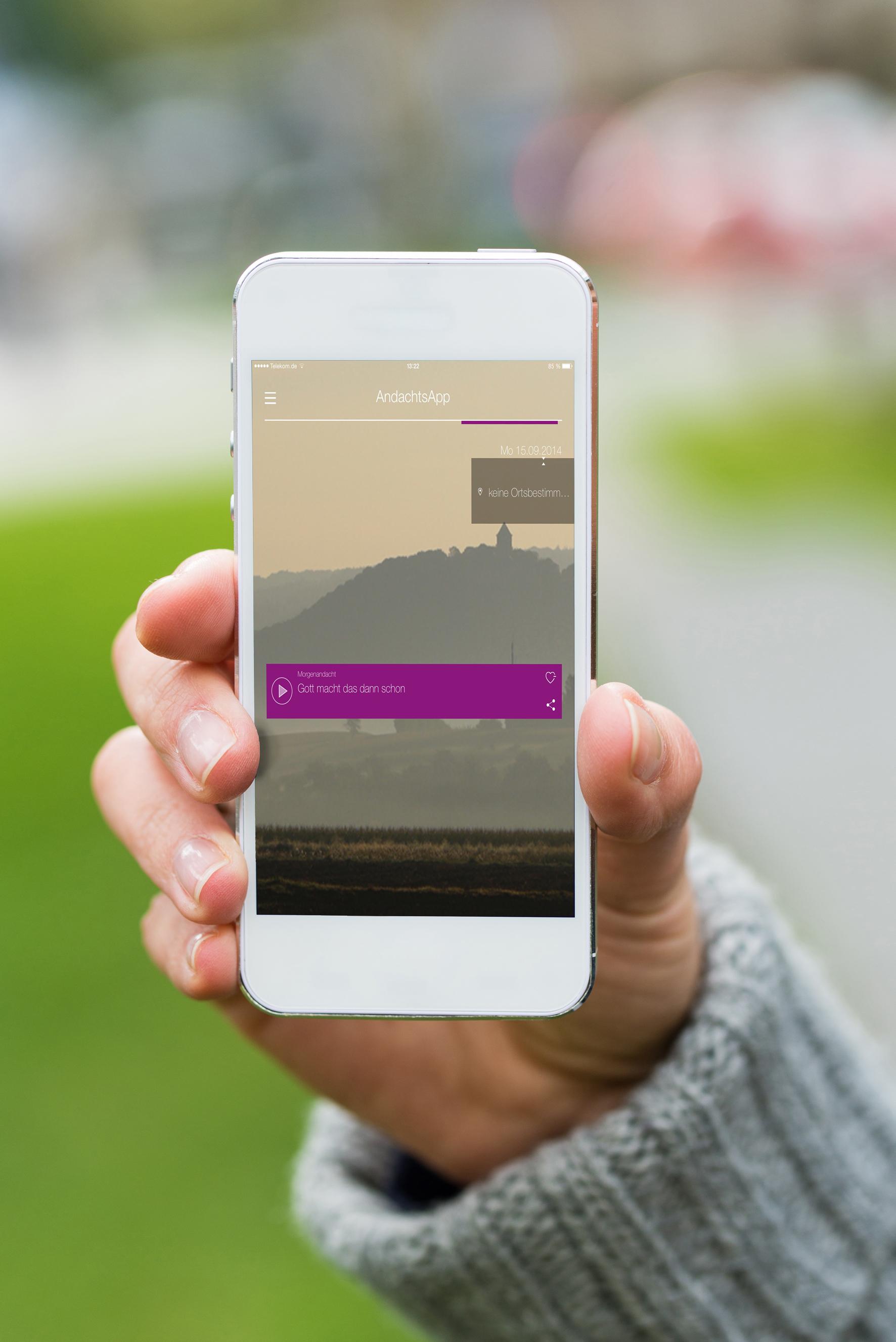 Die AndachtsApp für Smartphone und Tablet kann über den Apple Store (iOS) oder über Google Play (Android) heruntergeladen werden. Die Direktlinks zu den Stores sowie die Beschreibung der Andachts-App finden Sie auch unter www.andachtsapp.de.