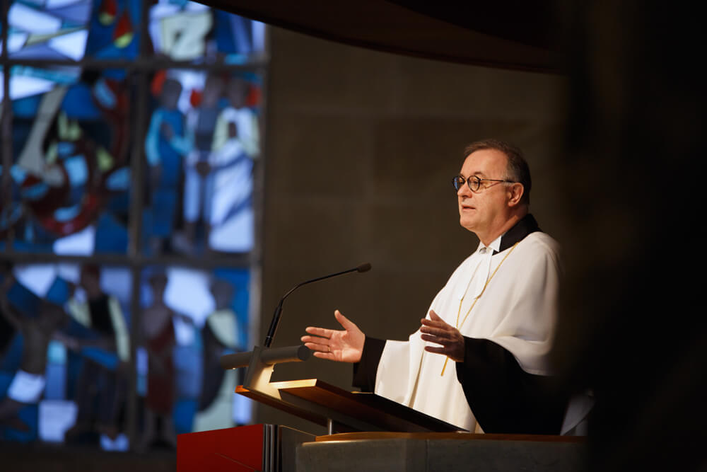 „Armut, Hunger, Gewalt, Terror, Krieg, als Folge davon Hunderttausende von Menschen auf der Flucht auch hierher zu uns: Wir leben in einer geschundenen, zerrissenen Welt. Wer soll sie heilen? Und wie kann in einer solchen Welt überhaupt Weihnachten werden?