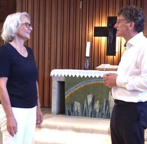 Landesbischof Ernst-Wilhelm Gohl war in der Evangelischen Kirchengemeinde Schmiden-Oeffingen im Kirchenbezirk Waiblingen zu Gast und hat dort Sonja Schelling getroffen. Sie ist Ehrenamtliche des Freundeskreises für Flüchtlinge in Fellbach.
